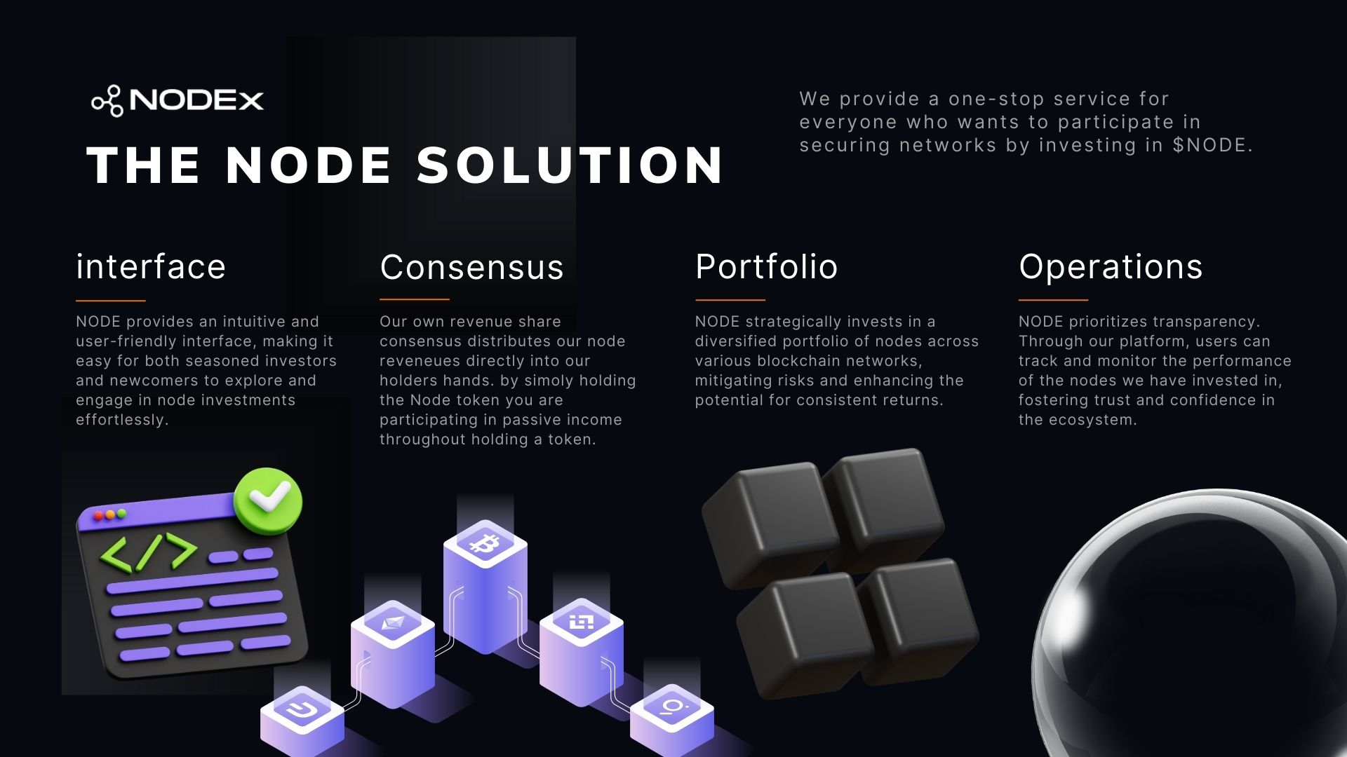 * NodeX allows users to contribute funds and participate in the operation of nodes within a blockchain network. This participation can generate passive income in the form of revenue from node operations, such as transaction fees or block rewards.